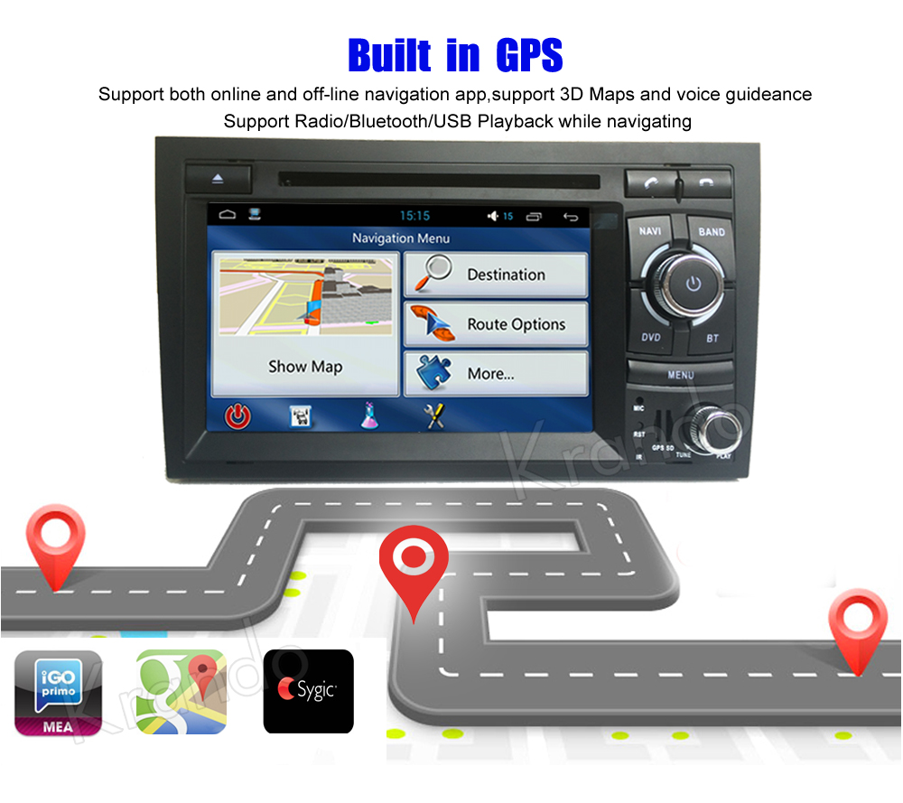 Krando Android 5.1 car radio for audi a4 s4 rs4 2002-2008 gps navigation dvd player multimedia WIFI 3G BT SW KD-AD704